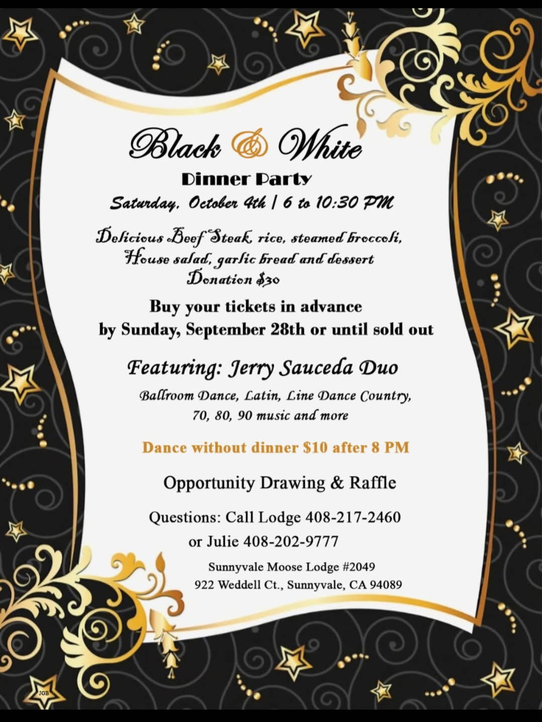 Black & White Dinner Party - Sunnyvale Moose Lodge #2049