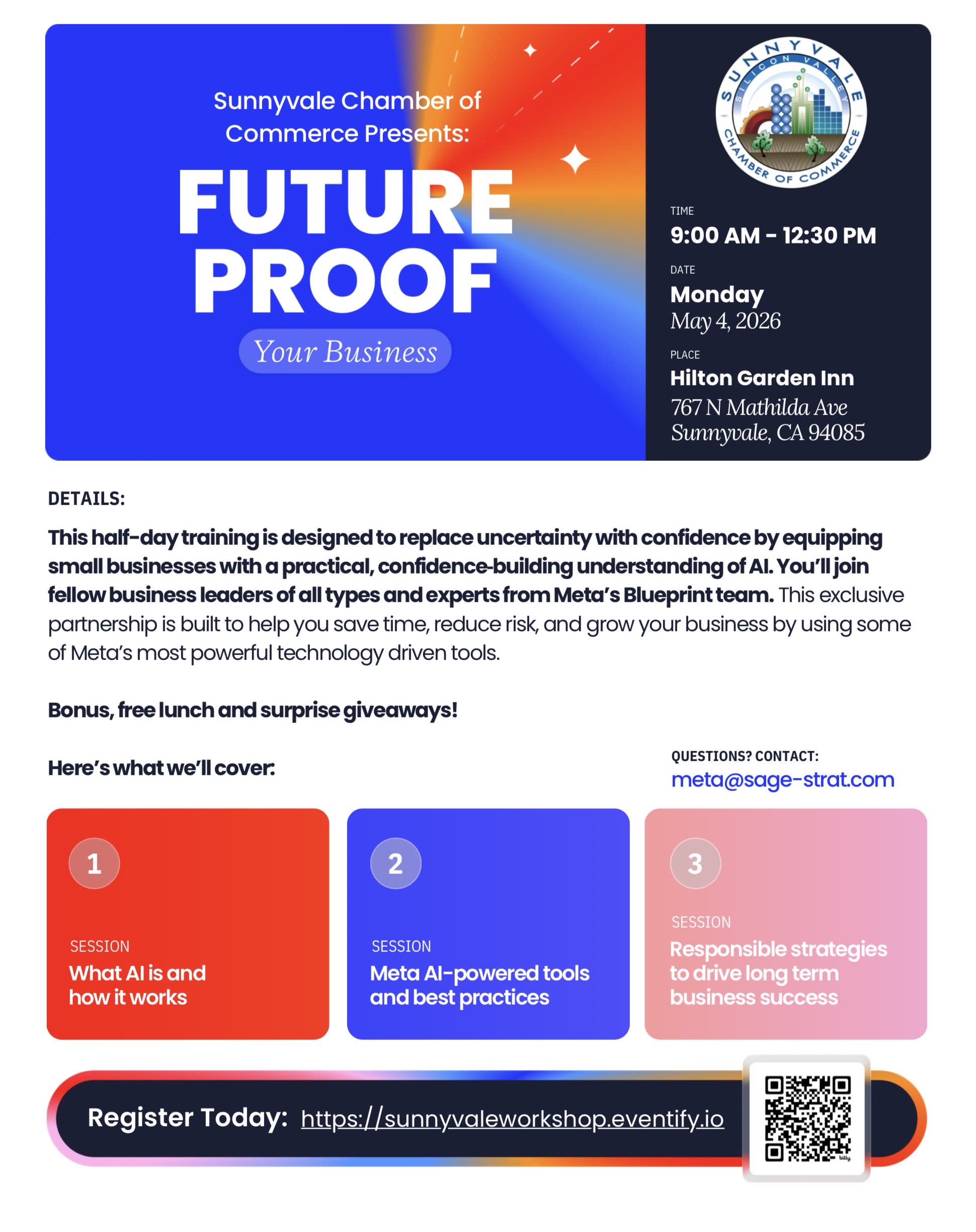 Here’s what the training will cover: (1) What is AI and how it works; (2) Meta AI-powered tools and best practices; (3) Responsible strategies to drive long-term business success.